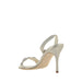 Lamisan Sandals by Manolo Blahnik, silk satin upper, slingback on elastic heel, jewel-covered buckle applied on back, leather stiletto heel.