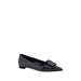 Calfskin Maysale Ballerinas by Manolo Blahnik, croc-effect leather design, tapered toe on front, rectangular embossed applique buckle on front, contrasting logoed insole, leather block heel.
