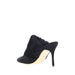 Leather Pelos Fabio Pumps by Manolo Blahnik, slip-on style, an almond toe, a suede leather design, a leather stiletto heel, a front fur detail on the upper, a stiletto heel, and a branded insole.