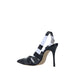 Uxra Fabio Pumps by Manolo Blahnik, upper design with transparent cut-out details, adjustable slingback with strap, leather stiletto heel, patent leather inserts on upper, almond toe, logoed insole.