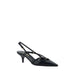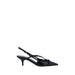 Calfskin Pumps by Miu Miu, leather kitten heel, adjustable leather applique straps at back of foot, contrasting logo insole, adjustable slingback at heel.