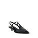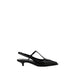 Leather Pumps by Miu Miu featuring a patent leather design, an elongated toe, a leather kitten heel, an elasticized slingback, an adjustable buckle fastening at the front, and a contrasting logo insole.