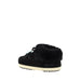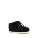 Mule Suede Beads Ankle Boots by Moon Boot, padded design with faux fur, iconic brand monogram printed in contrast on one side, front laces for closure with beaded detail, platform sole, ankle-length design.