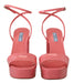 Step into luxury with these exquisite pink platform sandals by Prada. Crafted from top-quality patent leather, these sandals epitomize elegance with their sleek design and subtle logo details. Their expert Italian craftsmanship ensures not only a stunning aesthetic but also long-lasting wear. Feel the comfort of their leather bottom sole, perfect for a day out or a special evening event. These brand-new, tag-included heels are a must-have for those looking to add a touch of class to their wardrobe.