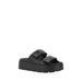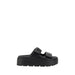 Prada’s lambskin Sandals are a perfect example of style and comfort. They feature a round toe and an adjustable double Velcro strap at the front, ensuring a personalized and secure fit. The notched wedge sole offers height and stability, while the quilted design adds sophisticated texture. The brand’s iconic monogram is visible on the front, a distinctive sign of luxury. The logo-embossed insole completes the look with a final touch of elegance.