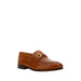 Calfskin Ottone Loafers by Salvatore Ferragamo, slightly elongated toe, leather block heel, leather front tray with the brand’s iconic gold-plated hooks, logo-embossed insole.