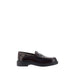 Calfskin Loafers by Tod’s, slightly elongated round toe, leather block heel, leather front tray, press-stamped logo insole, patent leather design.