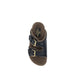 Leather Fussfriend Sandals by Valentino Garavani, soft shearling fur interior, adjustable double strap at back of foot, iconic brand monogram press-stamped on outer side panel, logoed insole.