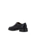 Calfskin Oxford Lace-Up Shoes by Valentino Garavani, leather block heel, almond toe, lace-up front closure, piping and stitching embellished with iconic contrasting Rockstud studs, logo-embossed insole.