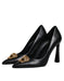 Versace Black Leather Logo Plaque High Heels Pumps Shoes