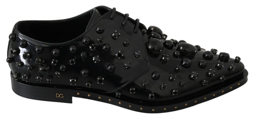 Dolce & Gabbana Elegant Black Crystal Leather Dress Shoes