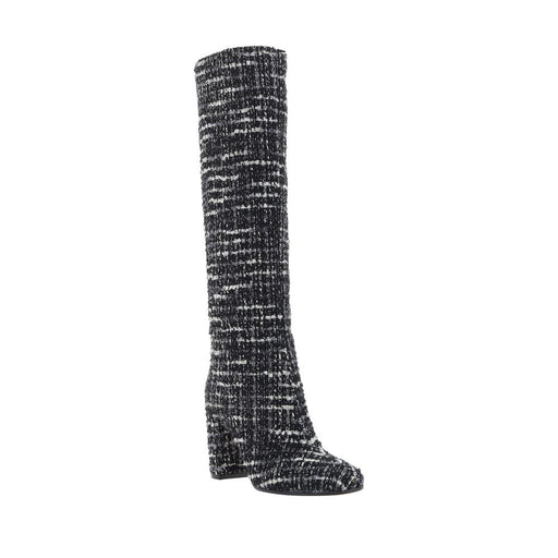 Original price $1,536.44Current price $906.72| /Boots by Gianvito Rossi, chunky heel, almond toe, all-fabric design with shiny mélange inserts, knee-length slip-on style.