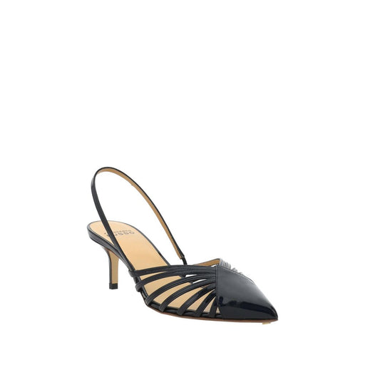 Original price $962.98Current price $711.96| /Leather Pumps by Francesco Russo, slingback design, pointed design, upper from thin patent leather straps, patent leather stiletto heel.