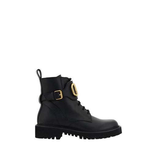 Original price $1,655.00Current price $1,409.39| /Calfskin VlLgo Signature Combat Boots by Valentino Garavani, lace-up front closure, metal buckle with maxi VLogo plaque applied to front, paneled d...
