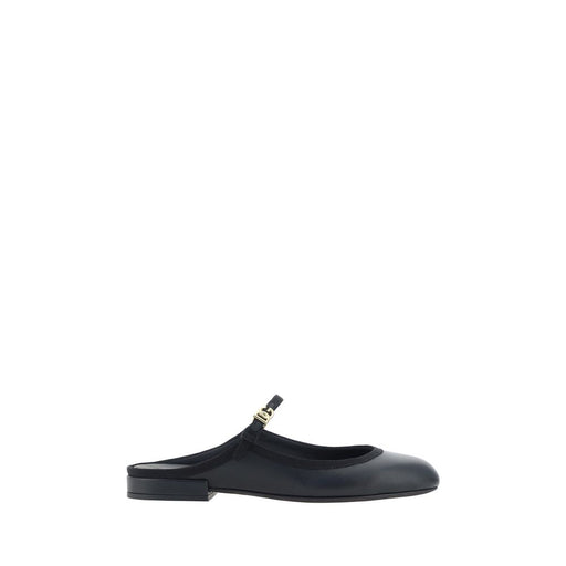 Original price $768.22Current price $582.12| /Leather Ballerinas by Dolce&Gabbana, almond toe, open heel design, adjustable applique strap on back of foot, D&G logo plaque on back, flat...