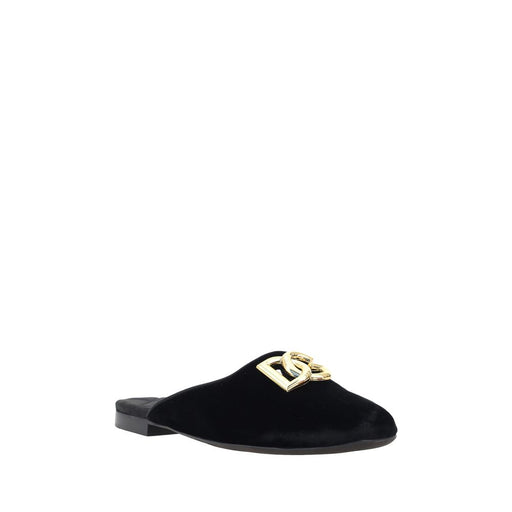 Original price $887.24Current price $670.84| /Leather Mules by Dolce&Gabbana, almond toe front, suede leather design, open heel design, slip-on style, toe embellished with iconic D&G pl...