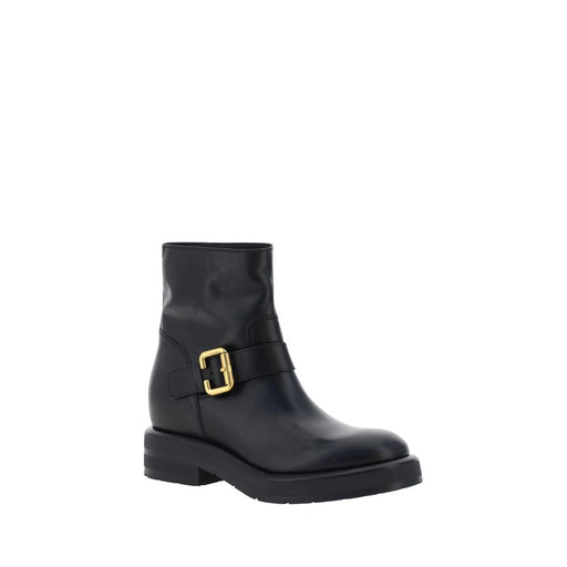 Original price $1,222.20Current price $874.88| /Calfskin Coddington Boots by Chloé, block heel, contrasting strap embellishes side panel, round toe.