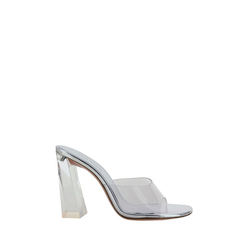 Original price $767.76Current price $607.62| /Alexa Glass Slipper Sandals by Amina Muaddi, geometric toe on front, semi-transparent stiletto heel, front band with transparent design, press-on l...