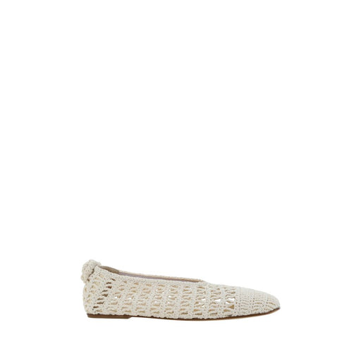 Original price $930.52Current price $683.82| /Cotton Ballerinas by Magda Butrym, all-over crochet weave, round toe, flat sole, three-dimensional flower applique on back, flat sole.
