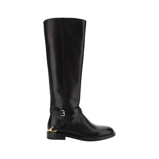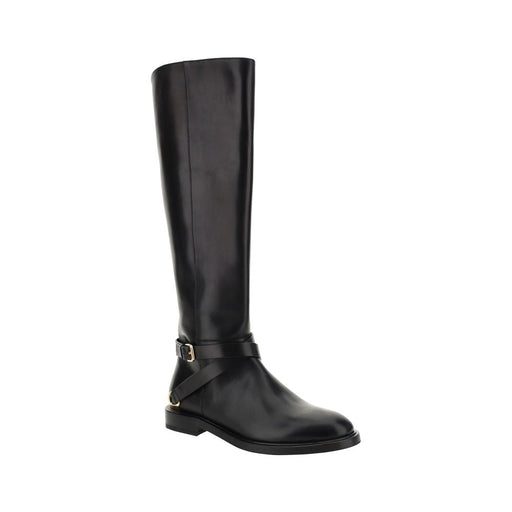 Original price $833.14Current price $621.07| /Cavalier Leather Boots by Coperni, knee-high model, round toe, closure, side by zipper, leather block heel, adjustable buckle with iconic three-dim...