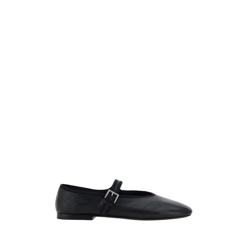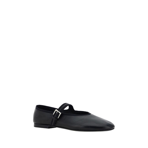 Original price $1,157.74Current price $971.64| /Leather Ava Ballerina from The Row, tapered toe, adjustable front buckle strap.