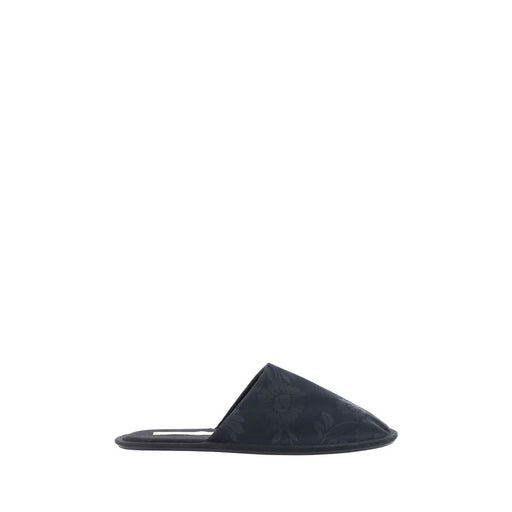 Original price $1,428.24Current price $856.94| /Frances Slippers by The Row, slip-on style, iconic brand monogram repeated in relief on the insole, tone-on-tone flower pattern.