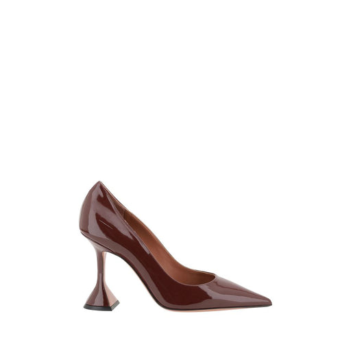 Original price $800.22Current price $628.18| /Leather Ami Pumps by Amina Muaddi, almond toe front, geometric leather heel, patent leather design, press-stamped logo leather insole.