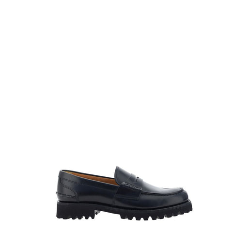 Original price $1,222.20Current price $854.32| /Calfskin Pembrey Loafers by Church’s, slightly elongated round toe, knurled rubber block heel, non-slip lugged sole, contrasting press-stamped logo...