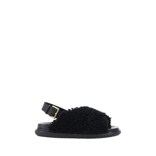 Original price $887.24Current price $657.86| /Leather Fussbett Sandals by Marni featuring a knurled flat sole, an open toe on the front, fur detail on the upper, an adjustable buckle closure at...