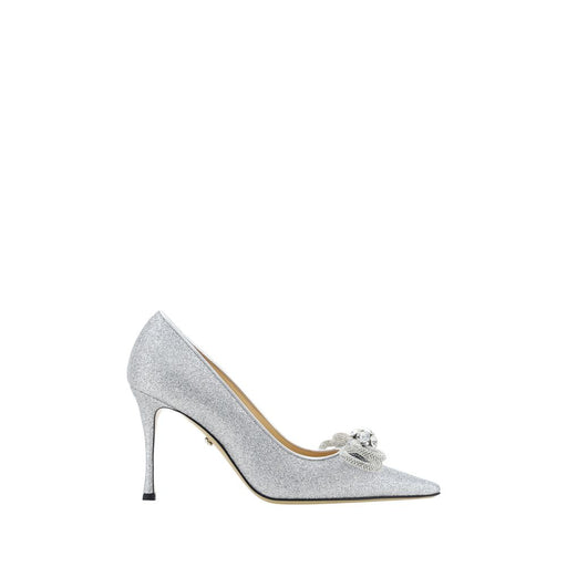 Original price $1,168.10Current price $1,111.30| /Double Bow Pumps by Mach&Mach, leather stiletto heel, all-over applied shiny glitter design, brand’s iconic bow applied in contrast on front to...