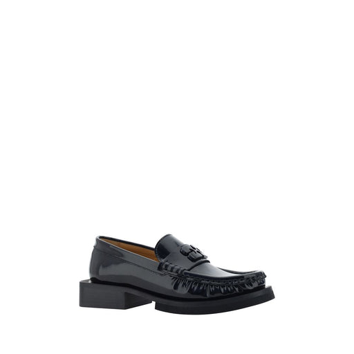 Original price $497.72Current price $432.80| /Feminine Buckle Loafers by Ganni, round toe, block heel, platform sole, buckle-embellished leather front tray, logo-embellished press-studded insol...