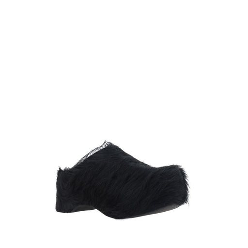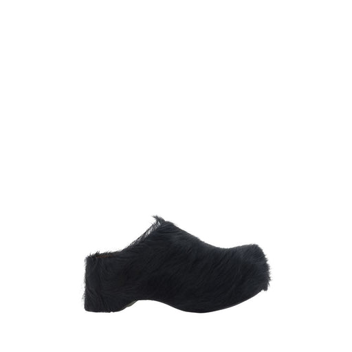Original price $1,082.00Current price $730.35| /Leather Mules by Marni, clog-style pattern, all-over long fur detail, anatomical leather insole, ribbed rubber sole.