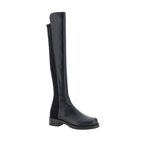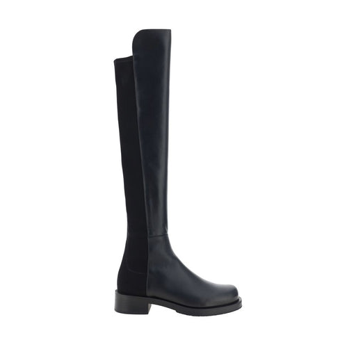 Original price $1,092.36Current price $730.97| /Calfskin Bold Boots by Stuart Weitzman, knee-high design, leather block heel, almond toe, slip-on style.