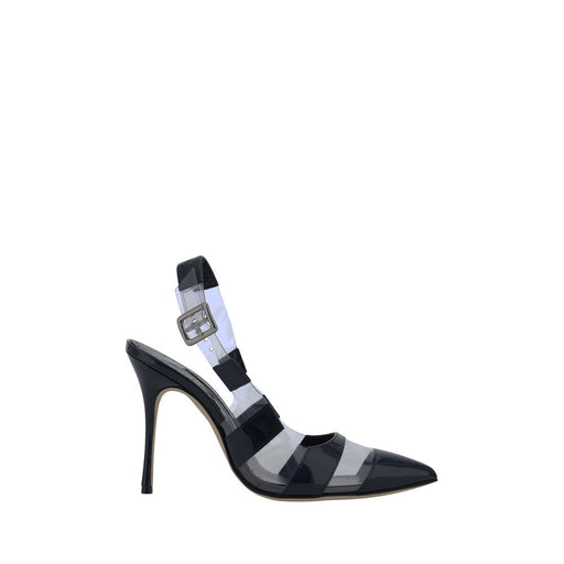 Original price $1,222.20Current price $833.76| /Uxra Fabio Pumps by Manolo Blahnik, upper design with transparent cut-out details, adjustable slingback with strap, leather stiletto heel, patent l...