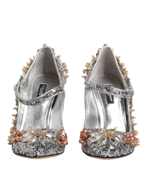 Dolce & Gabbana Silver Sequin Embellished Heels Pumps Shoes
