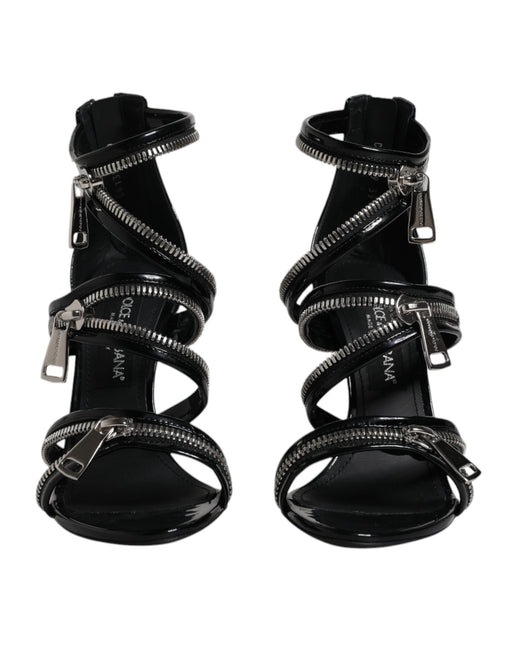 Dolce & Gabbana Black Zipper Ankle Strap Heels Sandals Shoes