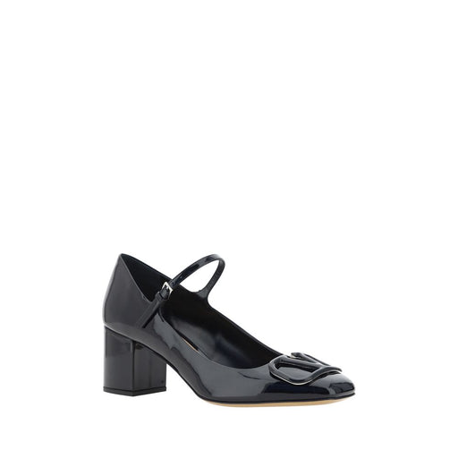 Original price $1,157.74Current price $822.32| /Calfskin Mary Jane Pumps by Valentino Garavani, patent leather design, leather chunky heel, almond toe on front embellished with three-dimensional ...