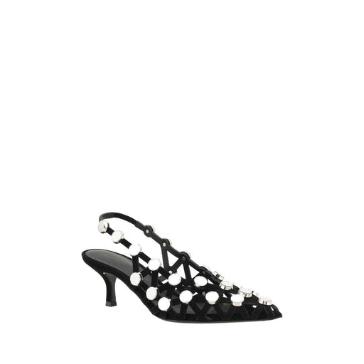 Original price $1,374.14Current price $1,123.12| /Leather Grid Pumps by The Attico, an elasticized slingback design, kitten heel, suede mesh design embellished with shiny mirrored jewels, geometric...