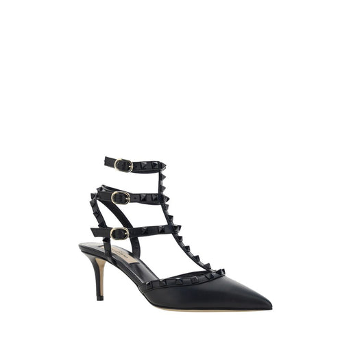Original price $1,211.84Current price $1,030.06| /Leather Rockstud Pumps by Valentino Garavani, elongated geometric toe, adjustable ankle lap strap closure with triple side buckle fastening, leathe...