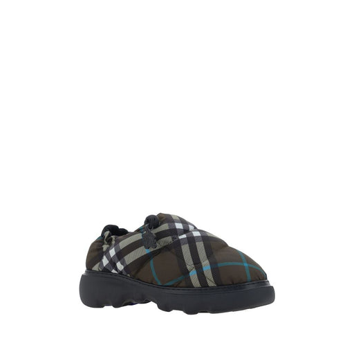 Original price $1,006.26Current price $772.55| /Flat Shoes by Burberry, padded and quilted design, contrasting slip sole, round toe, slip-on style, iconic all-over Check pattern, oversize design.