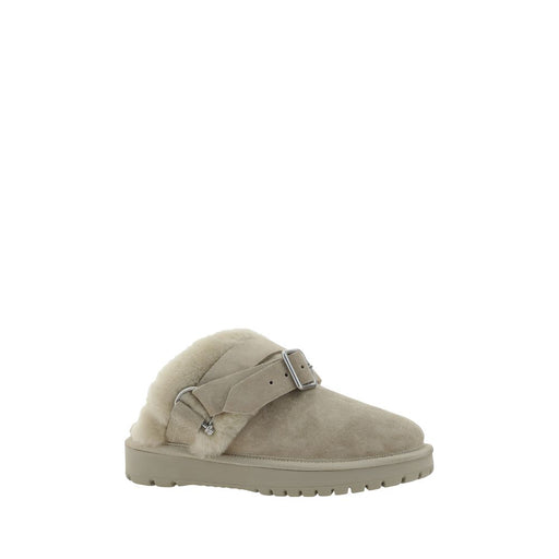 Original price $1,211.84Current price $849.37| /Leather Mules by Burberry, soft shearling-lined interior, slip-on style open at heel., suede upper, non-slip flat sole.