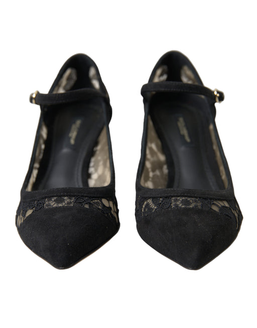 Dolce & Gabbana Elegant Suede Mary Jane Lace Heels