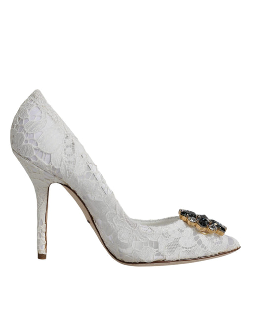 Dolce & Gabbana White Taormina Lace Crystal Heel Pumps Shoes