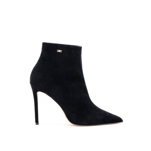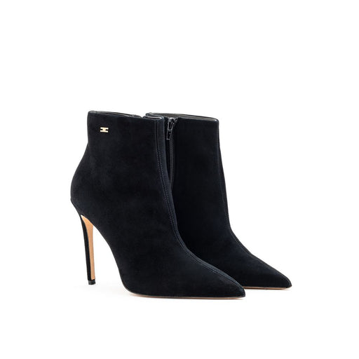 Original price $768.22Current price $553.98| /Elisabetta Franchi suede leather ankle boots. Made of soft black leather, covered in suede, with a pointed toe. Zipper closure. Golden logo on the ...