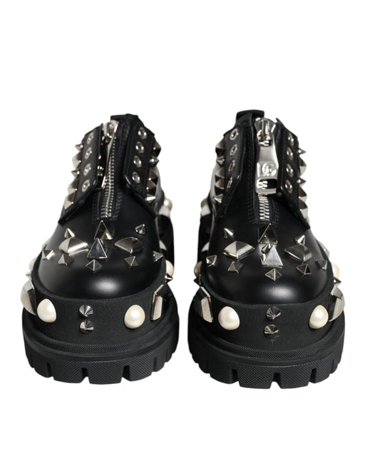 Dolce & Gabbana Black Leather Embellished Derby Formal Shoes