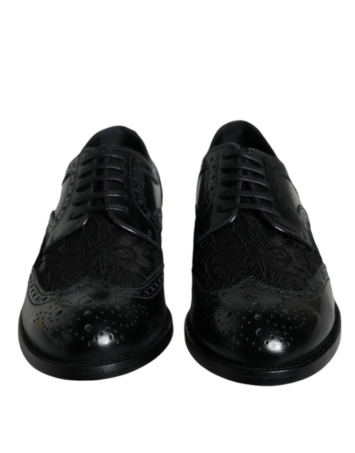 Dolce & Gabbana Black Leather Floral Lace Dress Formal Shoes