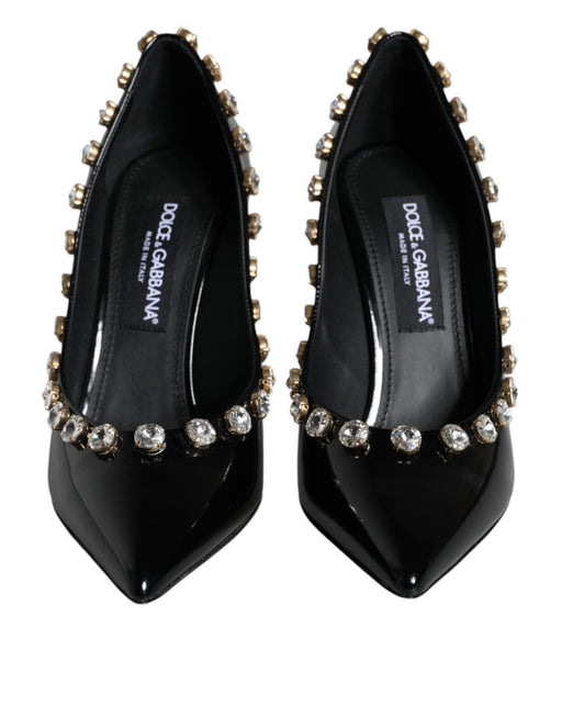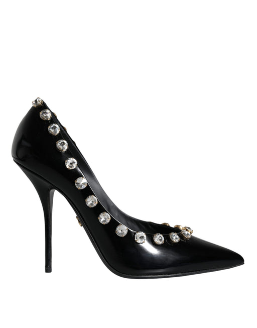 Dolce & Gabbana Black Crystals Leather High Heels Pumps Shoes