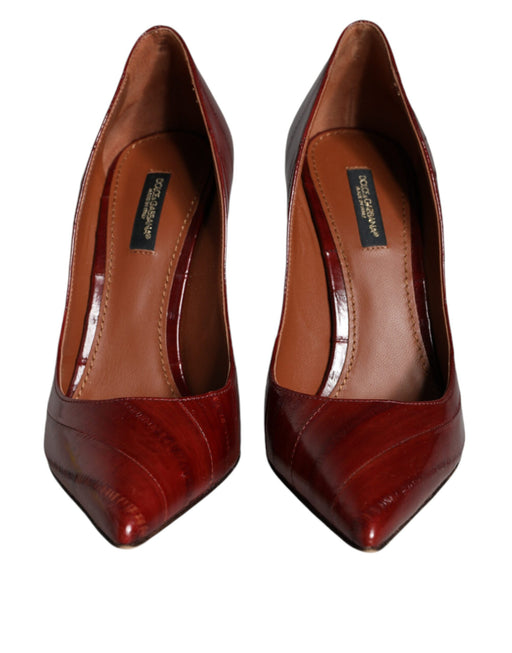 Original price $908.99Current price $453.71| /DOLCE & GABBANA Gorgeous brand new with tags, 100% Authentic Dolce & Gabbana eel leather heels pumps. Model: Stiletto pumps Colour: Dark Re...
