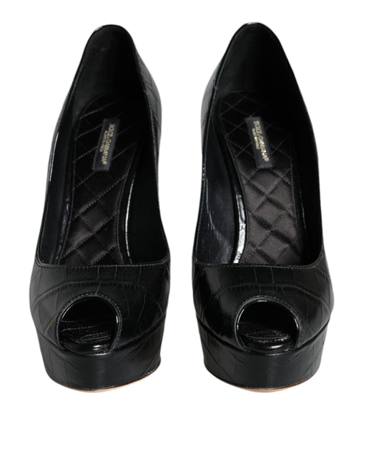 Dolce & Gabbana Black Leather Platform Heels Pumps Shoes