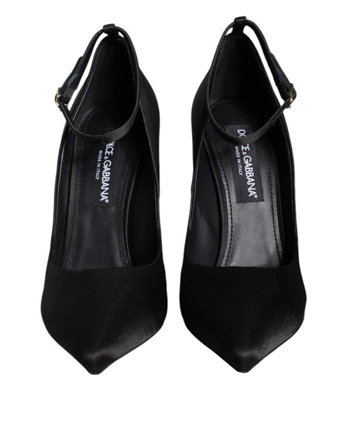 Dolce & Gabbana Black Satin Ankle Strap Heels Pumps Shoes
